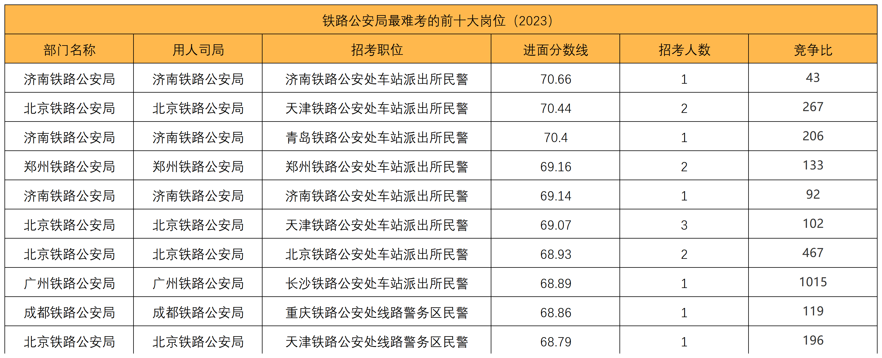 2024國(guó)考指導(dǎo):最難考和最容易考的十大崗位(鐵路公安局)