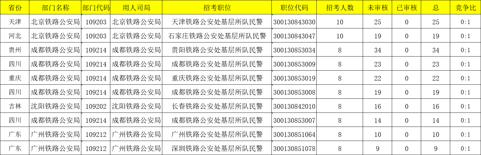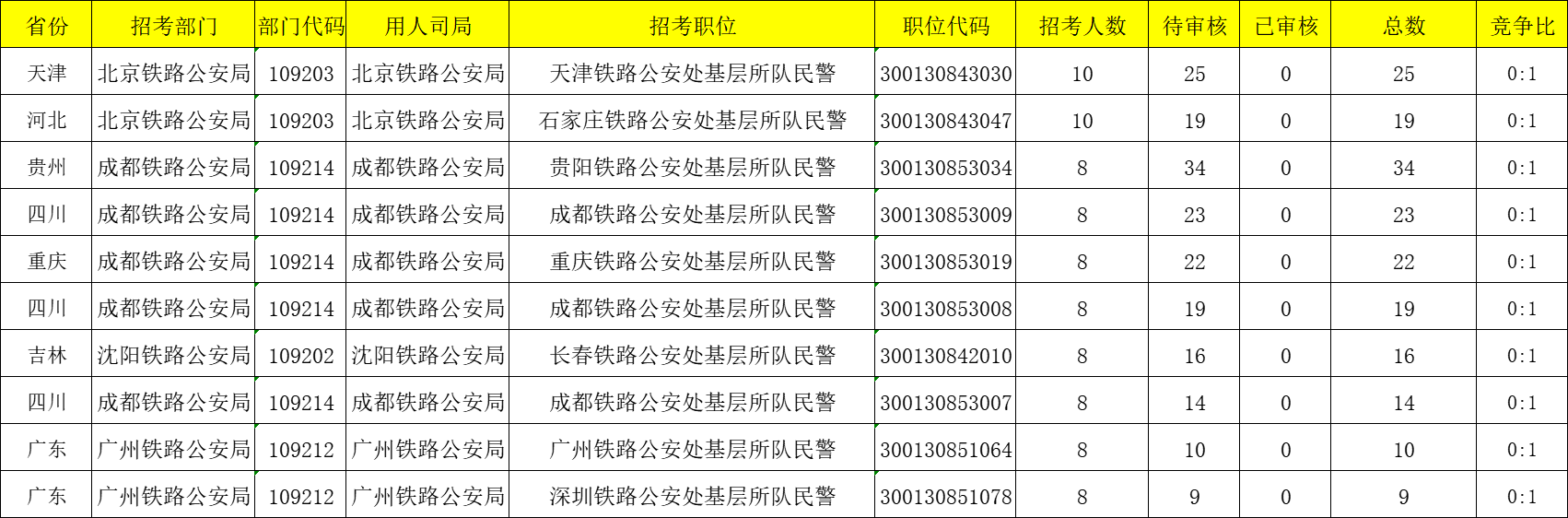 表1 鐵路公安系統(tǒng)招考職位及報名職位統(tǒng)計表(截止25日17:00前)