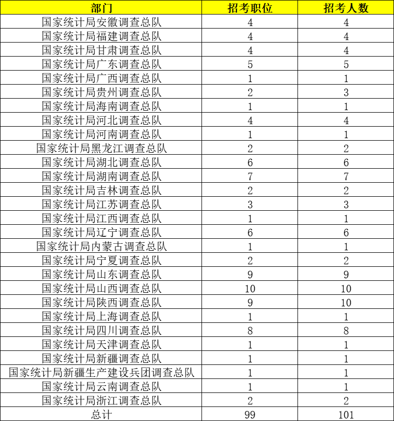 招考人數(shù)排名第二和第三的分別是“國家統(tǒng)計(jì)局新疆調(diào)查總隊(duì)新疆調(diào)查總隊(duì)業(yè)務(wù)處室一級主任科員及以下(2)”和“國家統(tǒng)計(jì)局甘肅調(diào)查總隊(duì)甘肅調(diào)查總隊(duì)業(yè)務(wù)處室一級主任科員及以下”,均招收4人。統(tǒng)計(jì)局招考在專業(yè)要求大部分以統(tǒng)計(jì)學(xué)和數(shù)學(xué)類為主,具體要求,同學(xué)們要根據(jù)自己的意向崗位規(guī)定來看,在選崗之前一定要看好所有的要求信息!