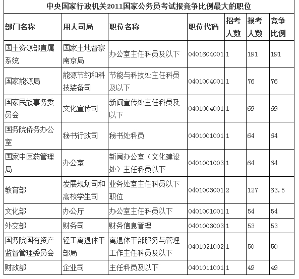 2011國家公務(wù)員考試點(diǎn)擊量最低職位排行