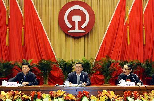 1月7日,中共中央政治局委員、國務(wù)院副總理張德江在北京出席全國鐵路工作會議并講話。