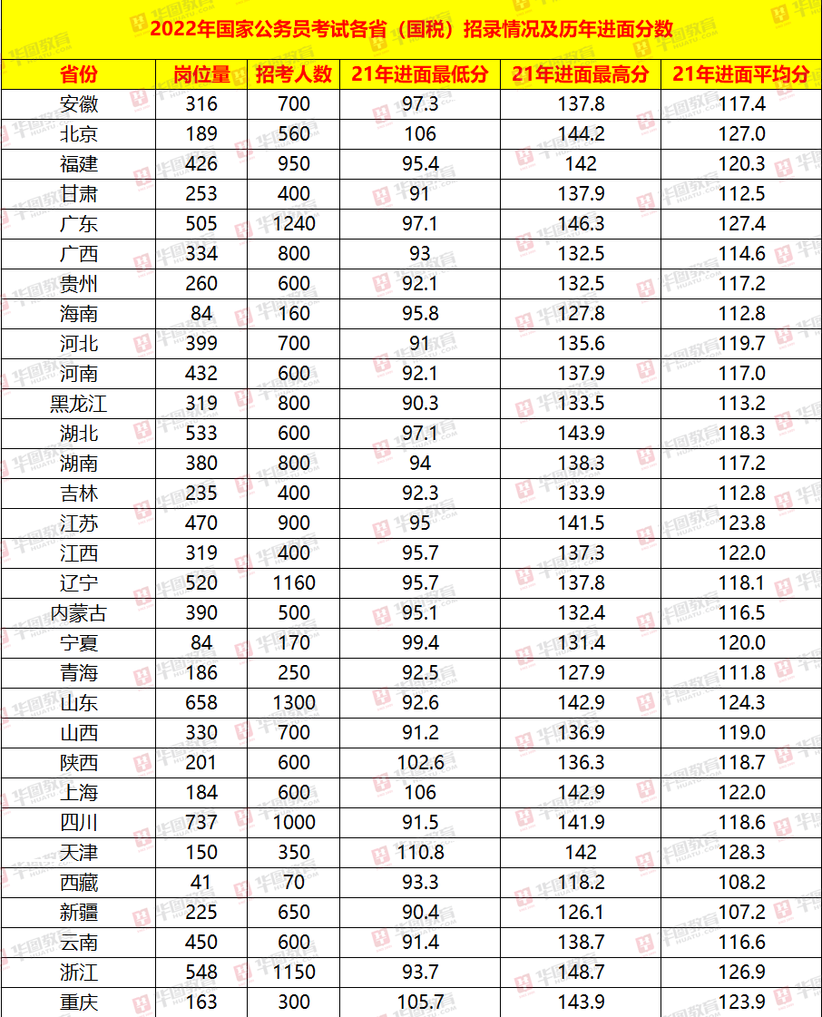 2022年的國考公告終于揭曉,國稅系統(tǒng)不失為招錄大戶,其招錄人數(shù)在在各省市的招錄總?cè)藬?shù)中仍然占據(jù)了較大比例。從疫情影響以來,就業(yè)形勢愈發(fā)嚴(yán)峻,很多考生也是花了大量時間在準(zhǔn)備,想在2022年中的國考中,謀得一份職位,尤其在國稅系統(tǒng)中,想進(jìn)一步提高勝算。那么,華圖在線將為您助力,增添進(jìn)面的砝碼,通過梳理歷年來進(jìn)面分?jǐn)?shù)來做到知己知彼,并在國考的大軍中脫穎而出。