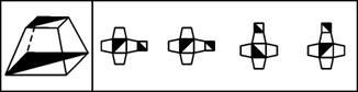 答案:B.[解析] 兩個黑色三角形相對,只有B項能折疊成左邊給定的圖形。此題顯然兩個黑三角形所在面是特征面,抓住其二者的位置關(guān)系,題目就很容易解答了。