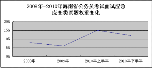 伴隨著公務(wù)員考試的成熟與發(fā)展,海南省考面試的靈活性也進(jìn)一步增加,比如在2010年出現(xiàn)了一道情景模擬題,試題如下:“元旦前夕,你代表單位去慰問(wèn)退休老干部,開(kāi)一個(gè)座談會(huì),在會(huì)上你要發(fā)言,請(qǐng)模擬一下。”