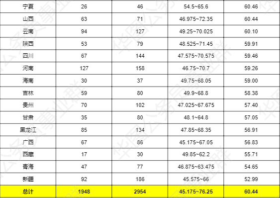 表1: 2021年國家公務(wù)員考試(銀保監(jiān)會)各省招錄情況及歷年進(jìn)面分?jǐn)?shù)