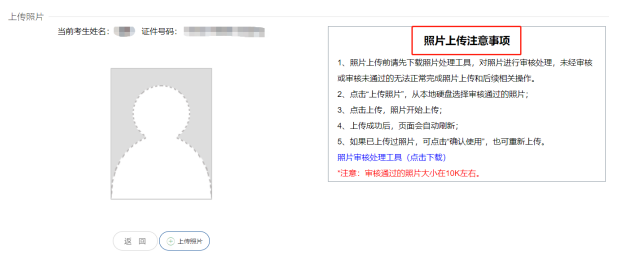報考人員應(yīng)下載系統(tǒng)提供的“照片審核處理工具”對照片進行處理,未通過“照片審核處理工具”進行處理的照片無法上傳。報考人員應(yīng)對照片質(zhì)量負責,如因照片質(zhì)量影響考試的,后果由報考人員承擔。